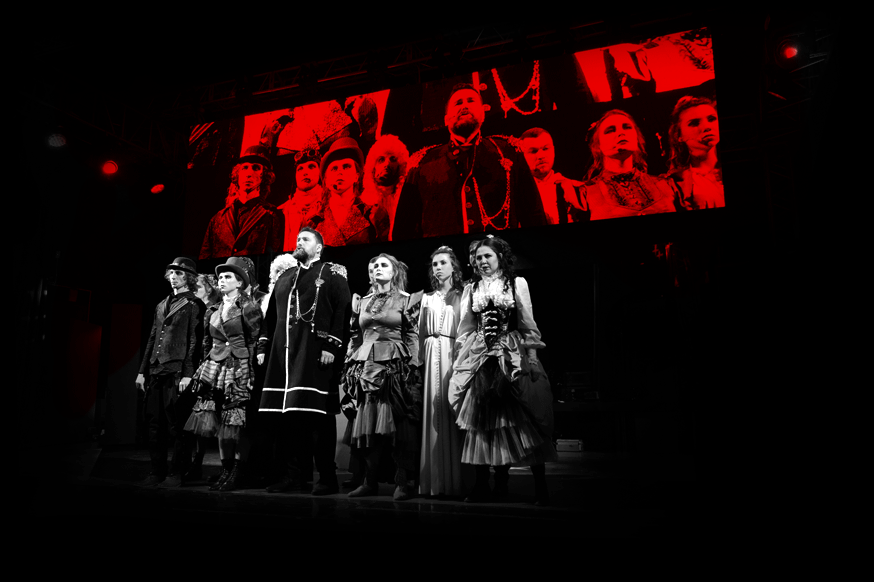 исполняется профессионалами на сцене вместе с актёрами